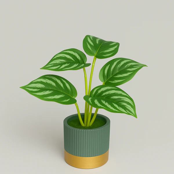 The premium ribbed ceramic pot with a golden base enhances the overall design, giving it a sophisticated look that blends well with both modern and traditional interiors.